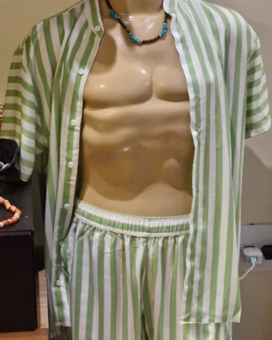 CAMISA DE LINHO LISTRADA VERDE E BRANCO MANGA CURTA