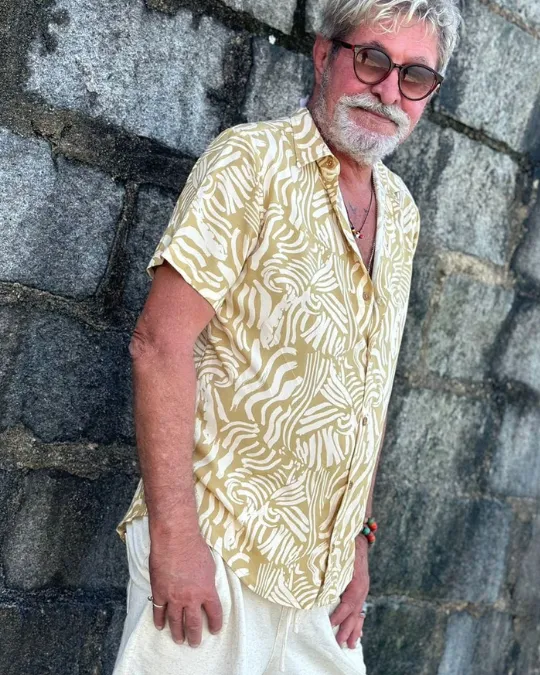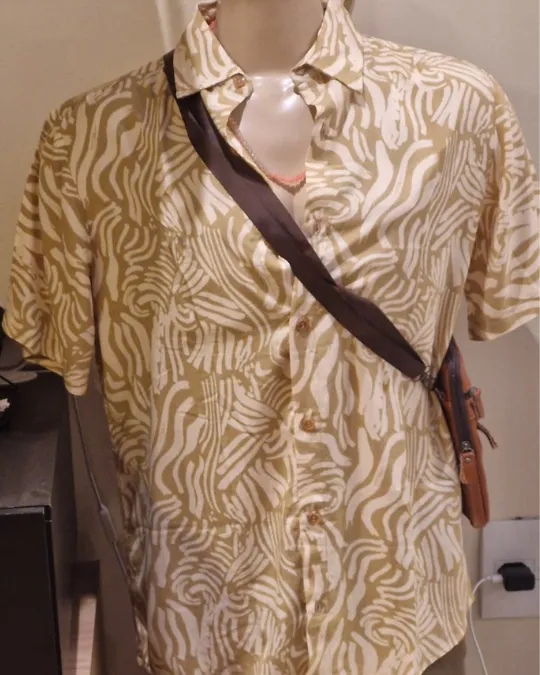 CAMISA DE VISCOSE DIGITAL ESTAMPA MOSTARDA