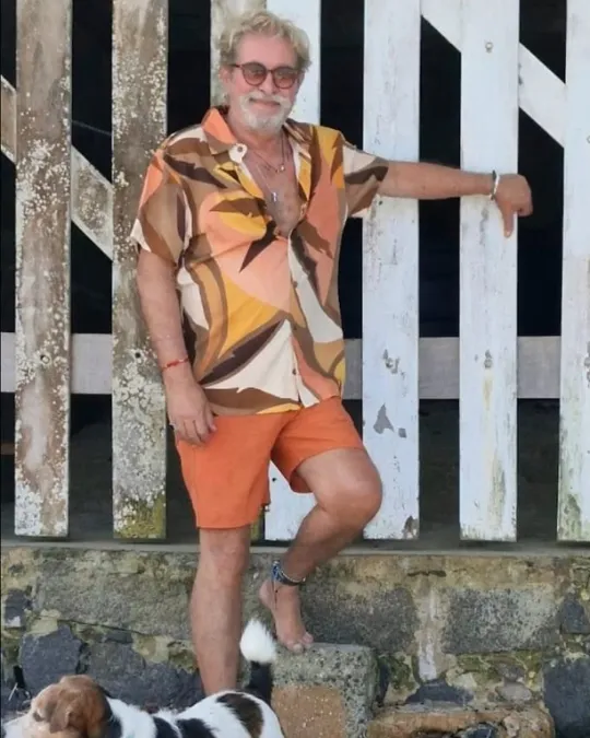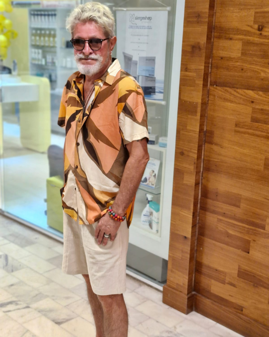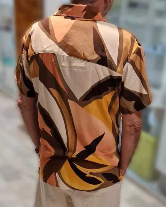 Camisa de viscose digital com estampa tropical marron manga curta