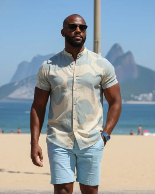 CAMISA DE VISCOSE DIGITAL ESTAMPA FOLHAS AZUL
