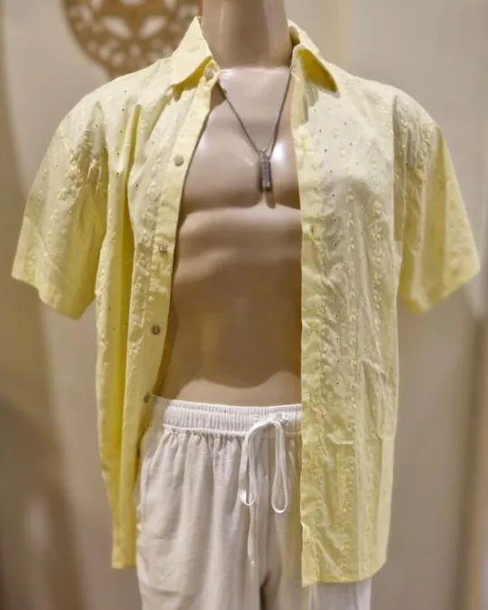 CAMISA EM LAISE AMARELA